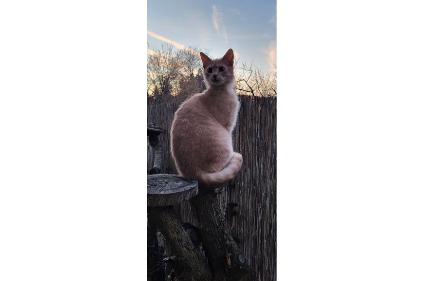 Robin púder színű kinti-benti cicaJanuárban mentettem egy kolóniából, kb 1-2 éves kandúr. Ivartalaníttattam, féreghajtottam, szocializáltam. Nem lehet csak lakásban tartani, olyan kertes házat keresek ami egy csendes mellékutcában található, ahol ki-be járós cica lehet. Költözés után fontos,hogy legyen egy külön szobája/garázs ahova be lehet zárni míg meg nem szokja az új környezetet és fel nem oldódik teljesen. Más macskákkal jól kijön, nagyon szeret játszani. Reggel-este 5-8 közt van a turbó üzzemmódban, ilyenkor szokott kimenni is. Jó időben egész délelőtt kint van. Ha este másik szobába bezárod, reggel akkor kel amikor te, elfogadja a külön alvást.Ketrecet nem viseli, de szobába be lehet zárni. Szobatiszta, soha nem wczett csak az alomba vagy kint! Ajtót nem kaparta nálam. Nagyon beszéde, igazi társállat, tudok videót is küldeni ahogy csipog. Felénk, de extrovertált cica. Magától nem ugrik az öledbe, de ha felveszed dorombol és bújik Dél-Pesten van, várom jelentkezésdet ha örökbe fogadnád