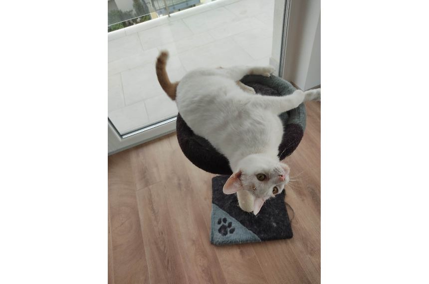 Gazdit keres ez a rendkívül barátságos, bújós és doromboló mentett cica. Teljesen egészséges, minden oltással rendelkezik, ivartalanított. Más macskákkal is jól kijön, ugyanis ezelőtt két másik cicával élt együtt, így akár többcicás otthonba is azonnal költözhető. Szeret játszani és labdázni, igazi társasági lény,aki dolgozni is alig hagy, mert akkor is övé a figyelem központ. :) Jelenlegi helyzete miatt mielőbb végleges, szerető családra van szüksége. Ha felelősségteljes gazdi vagy és befogadnád, kérlek, jelentkezz a megadott elérhetőségek bármelyikén!