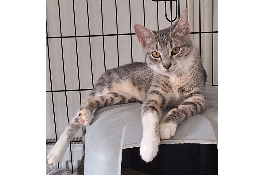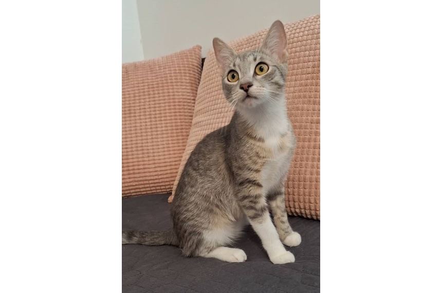Dotti 2024. november közepén került a gondozásunkba. Az 5-6 hetes kiscica egyedül bóklászott az utcán lefogyva, picit kiszáradva és erőteljesen rázta a fejét. Az elmúlt hónapokban számtalan vizsgálaton esett át (ortopédia, belgyógyászat, neurológia, MRI, laborok) és a diagnózis kisagyi hypoplasia lett. A betegsége miatt a fejét folyamatosan rázza, és ez nem gyógyítható. Szinten tartható, picit javulhat, de idővel rosszabb is lehet, bár ez kevésbé valószínű. Dotti a vizsgálatokon túl kapott nálunk oltásokat, chipet és már túl van az ivartalanításon is. Elméletileg gazdikész.Dotti számára olyan gazdit keresünk, akinek van tapasztalata epilepsziás vagy kisagyi problémás cicával és maximum egy cicája van, akivel Dotti összeszoktatható. Nem szeretnénk kisgyerek mellé adni, és ideális lenne, ha a közelünkben tudhatnánk.Természetesen alap a benti tartás és a macskabiztos nyílászárók. Jelenleg a XVIII. kerületben lakik, itt lehet vele ismerkedni.Érdeklődni lehet 70 362-8958
