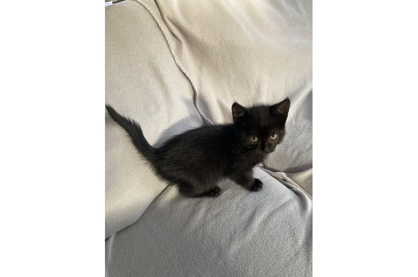 Nyolc hetes fekete kandúr keresi szerető gazdiját. Kézhez szokott, szelíd almozó cicafiú.